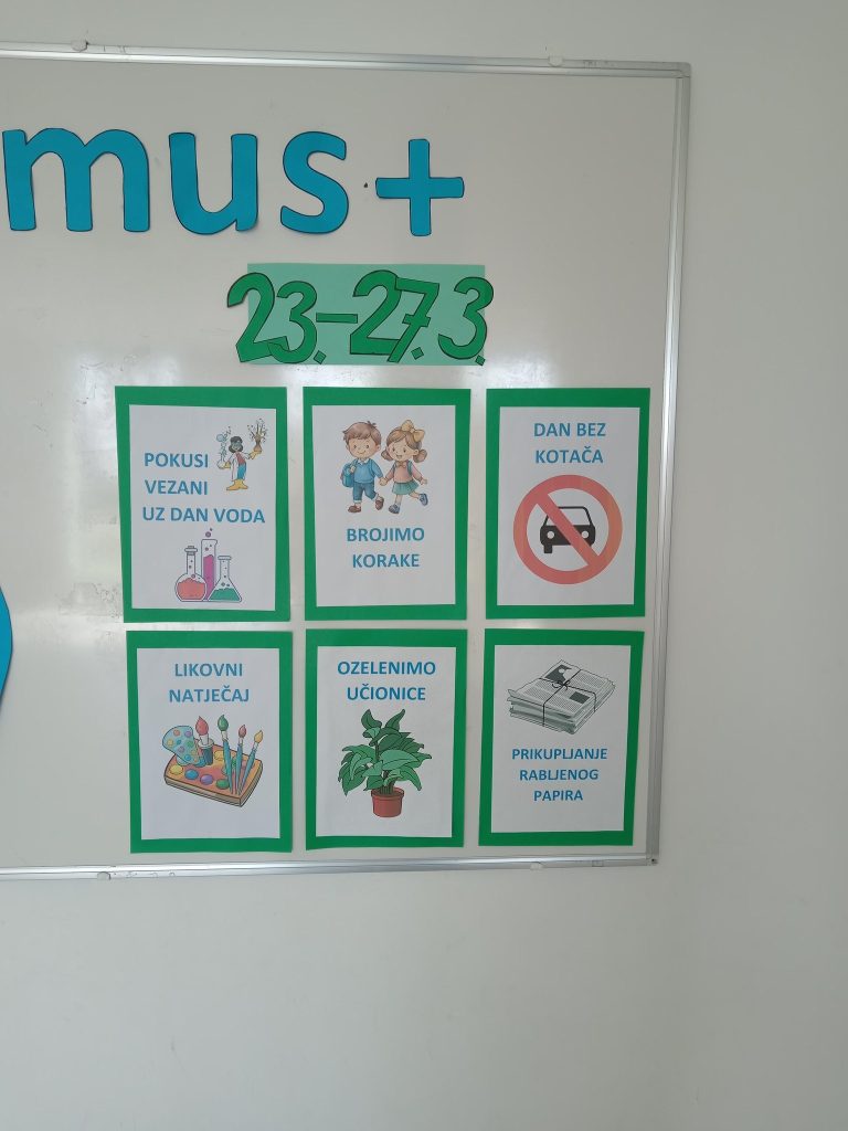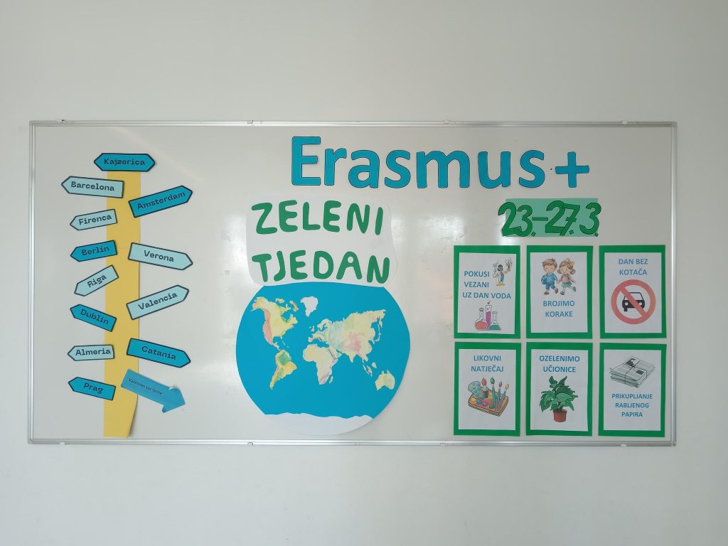 Zadnji tjedan prije početka proljetnih praznika (23. – 27. 3. 2026.) Erasmus tim koordinirat će brojne aktivnosti kako bismo podigli svijest učenika, roditelja i djelatnika naše škole o ekološkim temama.
